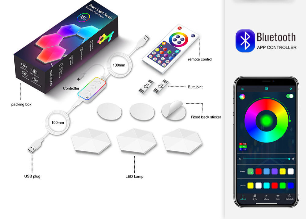 Designed to create an immersive ambiance, the Smart Honeycomb Lamp lets you customize your lighting experience effortlessly. Its intelligent features allow you to adjust colors, brightness, and patterns to suit any occasion—whether you're unwinding with a soft glow at night, energizing your space with vibrant hues during the day, or enhancing your gaming atmosphere with dynamic, responsive lighting effects. With easy-to-use controls, you can transform your environment with a tap. -